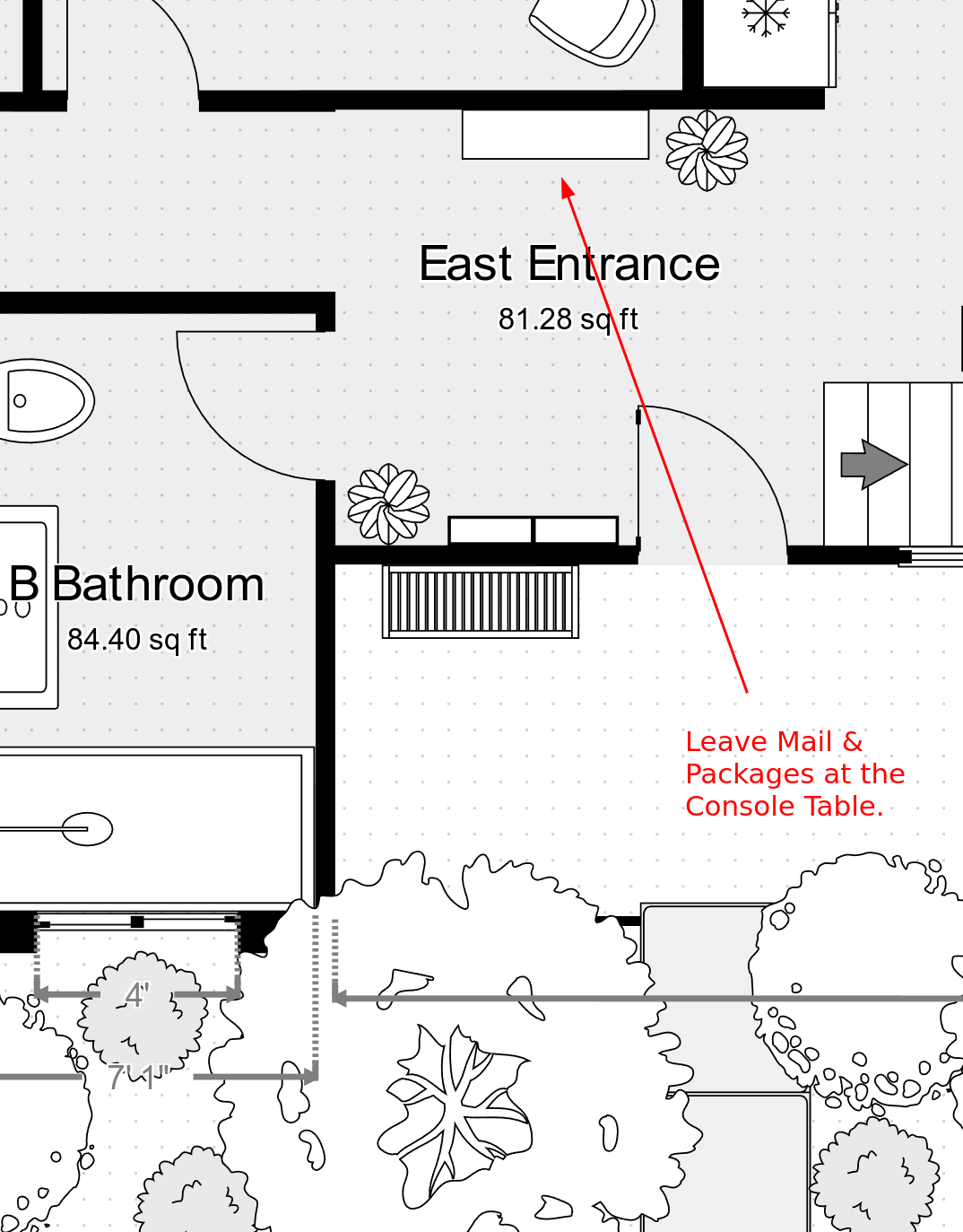 When you pick up mail or packages intended for another resident, or for the house, please place them on the console table on the East Entrance. This is our main ingress/egress point.